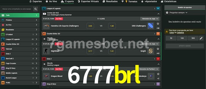 O 6777brl oferece uma grande seleção de opções de apostas em e-sports com probabilidades competitivas
